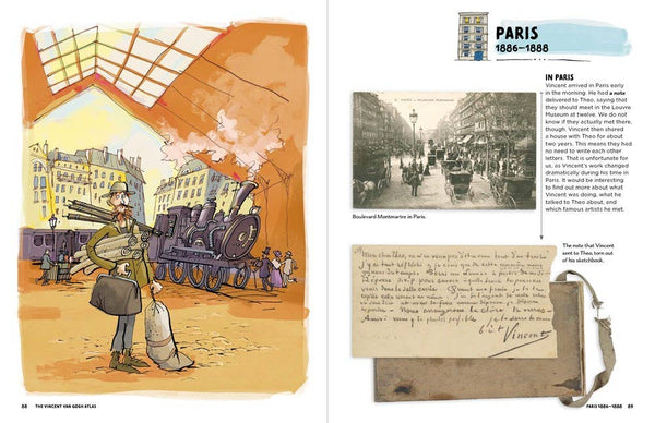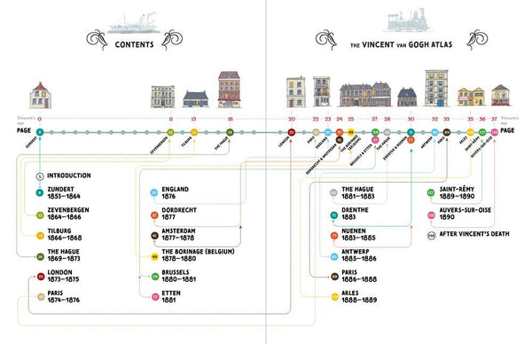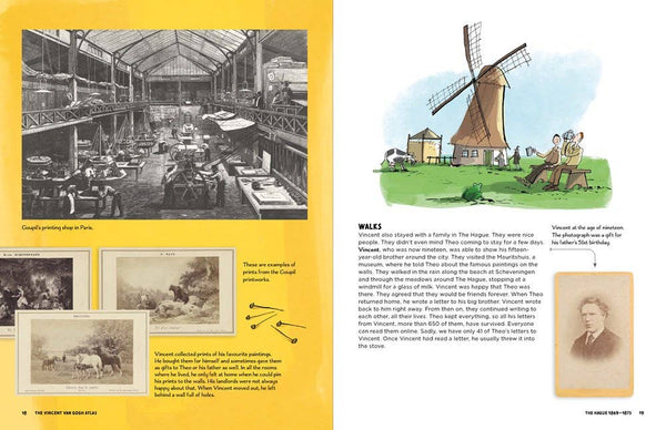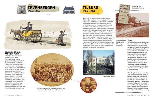Vincent van Gogh traveled widely throughout Europe—on foot, by boat, and above all, by train. He wrote countless letters to his family as he went, using the world around him as the subject for hundreds of drawings and paintings. And in his day, that world looked very different from ours.Brimming with colorful illustrations, historic photographs, letters, detailed maps, and other documents, this book enables readers to join Van Gogh on his journeys from Z to A: from Zundert in the southern Netherlands (where he was born), through London and Paris, to Auvers-sur-Oise in France (where he died).Offering a detailed introduction to Van Gogh's personal quest and the world of his time, The Vincent Van Gogh Atlas will immerse young readers in the history of the nineteenth century and the turbulent life of Van Gogh, the artist and man.